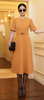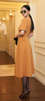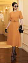 Noemi A-line Short Sleeved Scuba Calf Length Dress