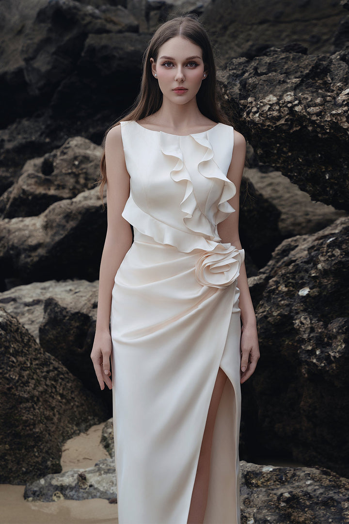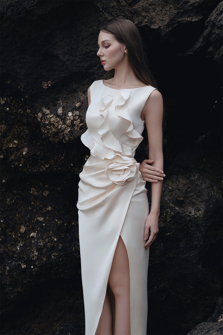 | 特殊功能 | Side draped with floral, Ruffle detail on the top, Side slit |