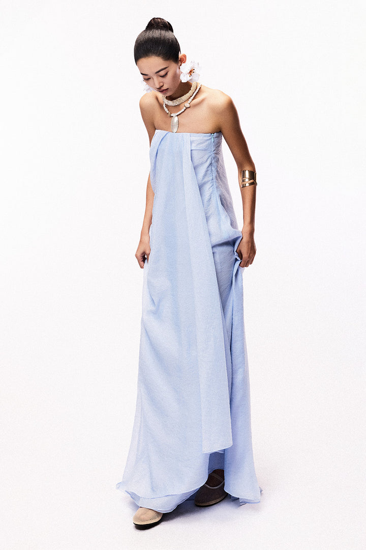 The dress features a flowing silhouette crafted from lightweight chiffon, offering elegant draping that enhances movement and grace. Its A-line cut provides a flattering shape suitable for a variety of occasions, combining expert craftsmanship with timeless style for a polished, sophisticated look.