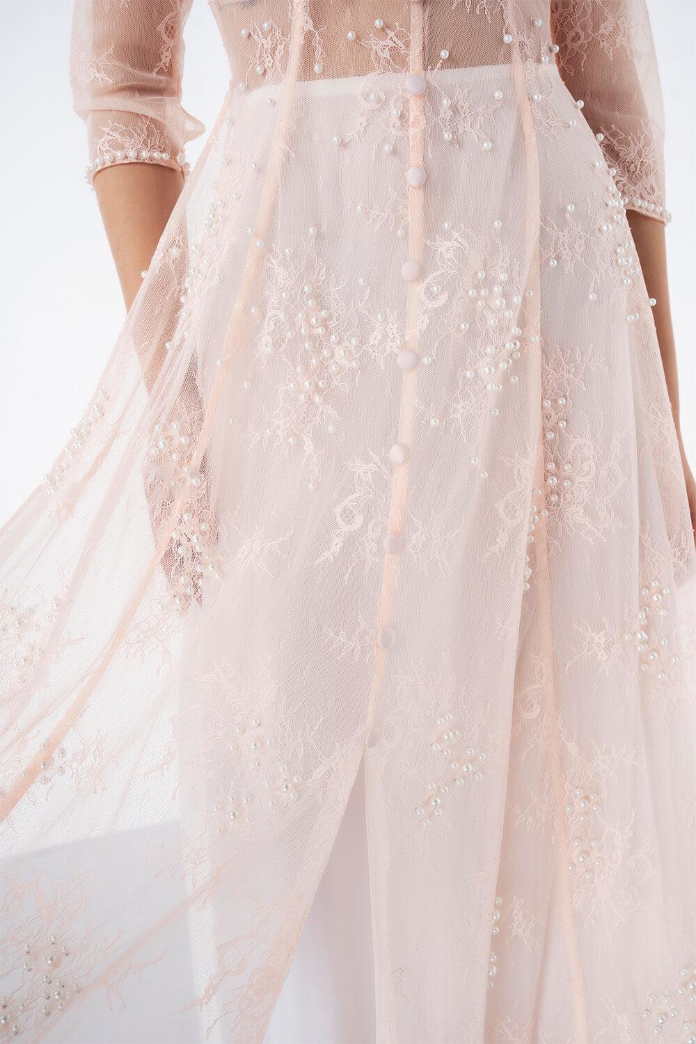 - Middle sleeves with pearl cuffs
