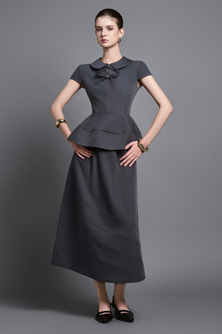 The skirt features expertly crafted diagonal seam lines that enhance its flattering silhouette. Designed with an A-line shape, it offers comfortable movement while maintaining a refined structure. Made from durable twill fabric, this skirt combines timeless style with everyday practicality for a polished, professional look.