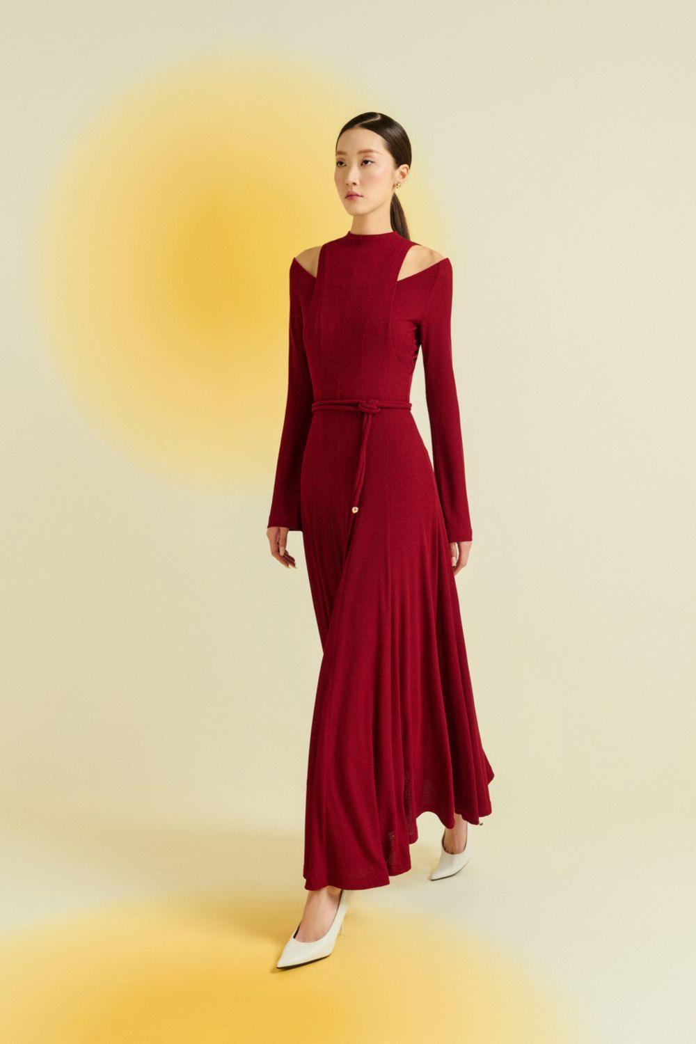 Diep A-line Draped Wool Ankle Length Dress