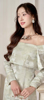 Giai Nhan A-line Off-Shoulder Brocade Ankle Length Set
