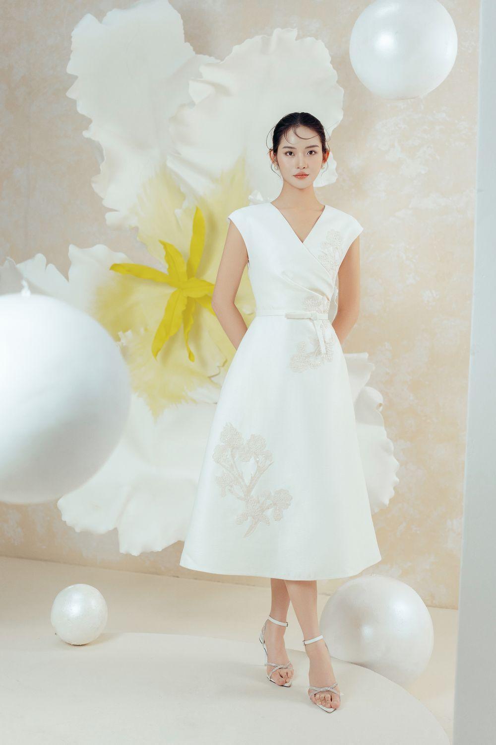 The dress is perfect for any occasion! Crafted from high-quality taffeta, this midi dress features a stunning v-neckline and a-line silhouette. Enjoy a glamorous look with a comfortable fit that allows for dancing the night away. What will you wear it to?