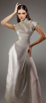 Expertly crafted from high-quality polyester, this Ao Dai is designed to provide a luxurious and comfortable fit. Featuring a sleek A-line silhouette and a classic Mandarin neck, this stunning dress is perfect for any formal occasion. Upgrade your wardrobe with this elegant floor-length Ao Dai.