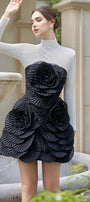 Attached 3D flowers on dress, Elastic top, Back zipper