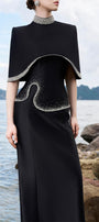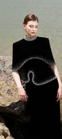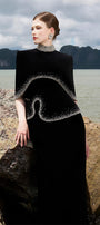 Introducing the cape - elevate your style with this luxurious addition to your wardrobe. Made of soft velvet, its high neck design brings an elegant touch, while the cropped length adds a modern twist. Perfect for special occasions or adding a touch of sophistication to any outfit.