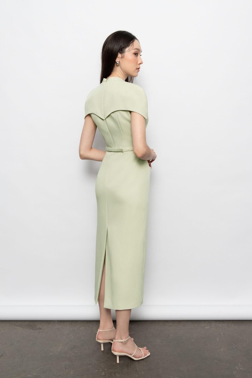 Evelyn Sheath Cape Sleeved Polyester Midi Dress