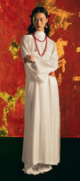 Embrace Eastern elegance with a modern twist. This striking ao dai set features a refined mandarin collar that frames the neckline with timeless sophistication, while the daring open back with delicate knot detail adds an unexpected flash of allure. Crafted from luxurious synthetic silk, it drapes beautifully and moves with effortless grace. Perfect for those ready to turn heads at formal events, celebrations, or whenever you want to feel absolutely unforgettable. A playful nod to tradition that refuses to play it safe.