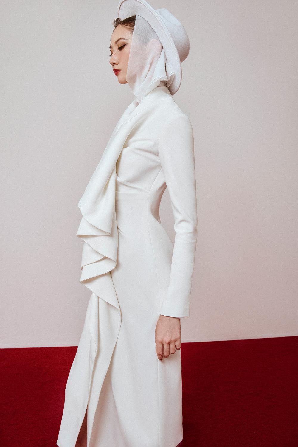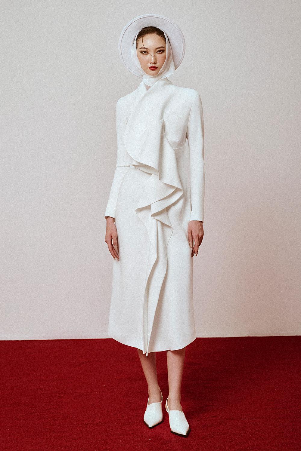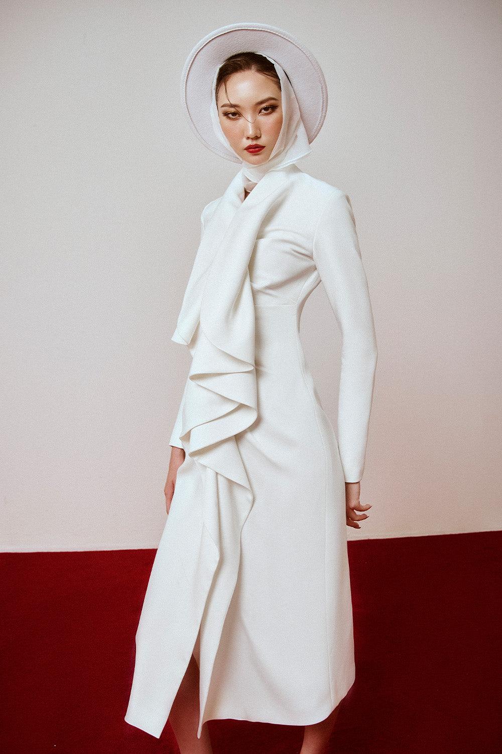 Conon A-line Ruffled Polyester Midi Dress