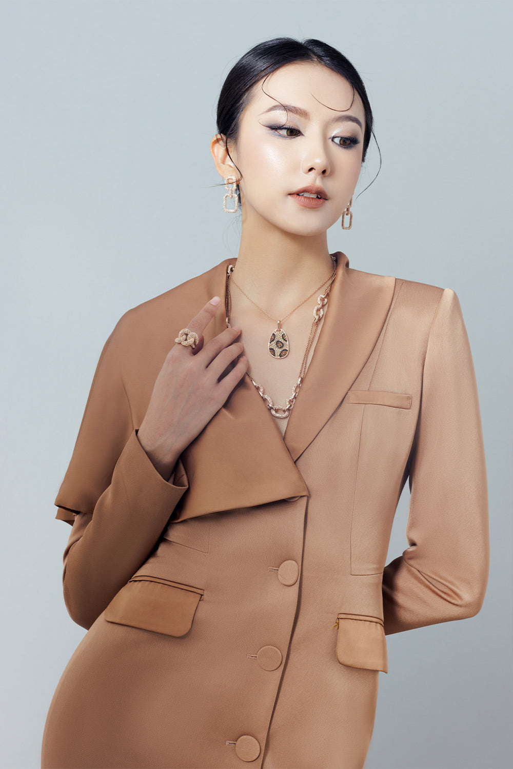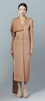 Asymmetric lapel with long silk flap, Single-breasted design with matching color button, Waist dart
