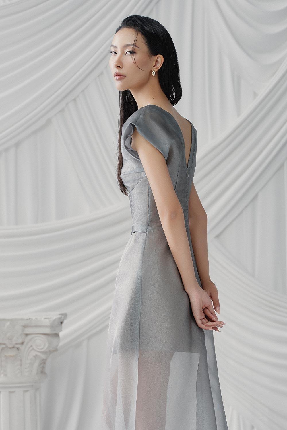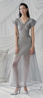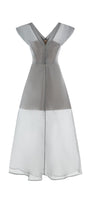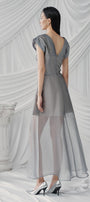 Expertly crafted from high-quality poly organza, this A-line dress features a flattering V-neckline and falls elegantly at ankle length. Perfect for any special occasion, this dress exudes understated sophistication. Add a touch of luxury to your wardrobe with this must-have piece.