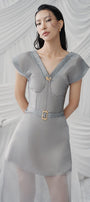 See-through lower skirt, Faux fabric belt on the waist, Chest cup, Corset waist