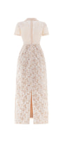 Exude refined elegance in this lace midi sheath dress, featuring a flattering V-neck and classic regular sleeves. Expertly tailored, it's perfect for cocktail parties, weddings, or sophisticated gatherings.