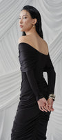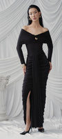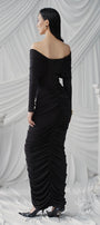 Gabrielle Gathered Extended Flap Cotton Jersey Ankle Length Dress