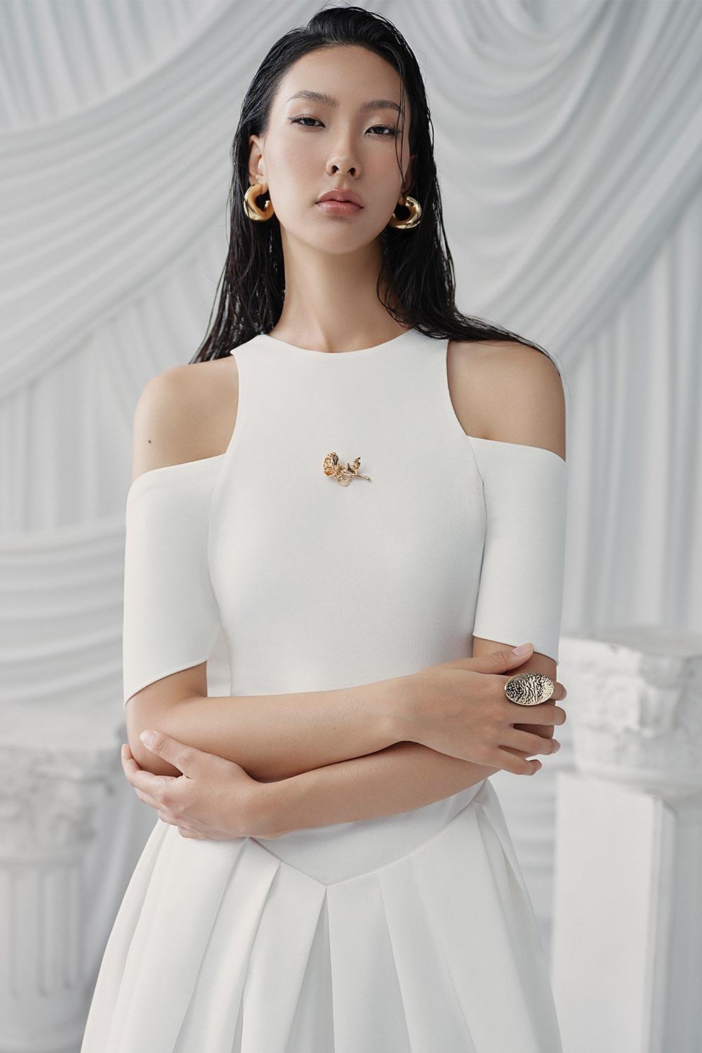 Made with soft, breathable cotton, this dress features a modern A-line silhouette and trendy cold shoulder sleeves. Perfect for any occasion, upgrade your wardrobe with this stylish and versatile dress.