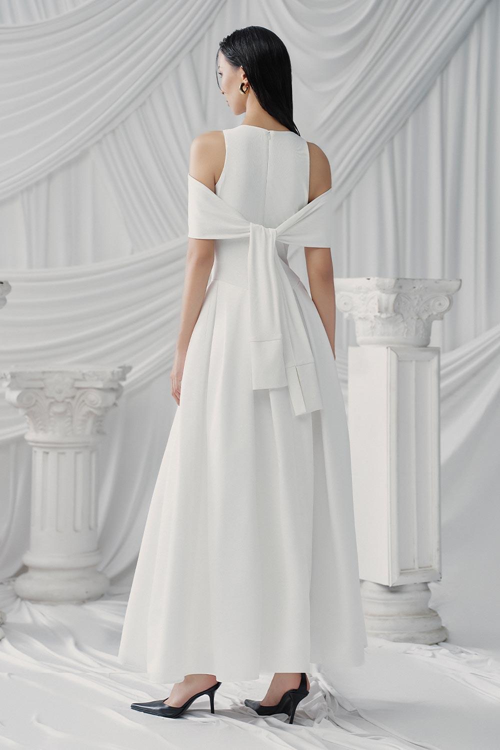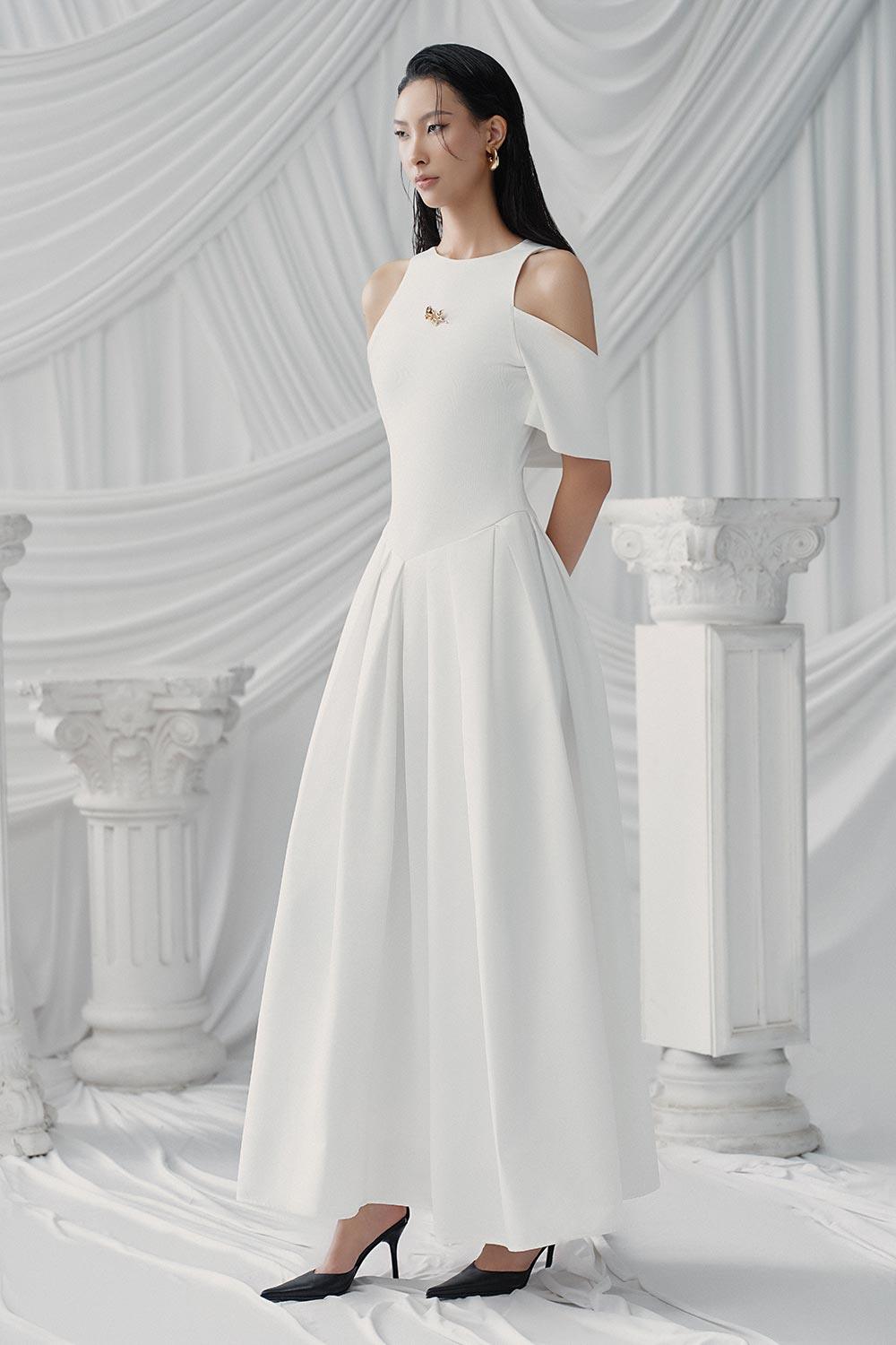 Trixie A-line Cold Shoulder Sleeved Cotton Jersey Ankle Length Dress