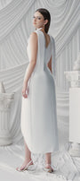 Expertly crafted with organza fabric, the dress offers delicate elegance and modern style. Its sleeveless design and mid-length cut create a flattering silhouette, perfect for any occasion. The lightweight fabric adds an airy and comfortable touch, making this dress a must-have for any wardrobe.