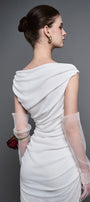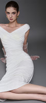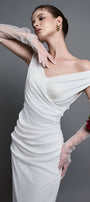 This dress features a sophisticated wide v-neck and a gracefully draped bodice, combining comfort with refined elegance. Crafted from breathable cotton, it offers a flattering silhouette suitable for both professional and social settings. Its midi length adds versatility, making it a timeless piece for your wardrobe.