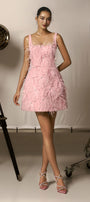 This dress features a flattering A-line cut and delicate strappy design. The structured crepe fabric adds structure and enhances the silhouette. Elevate your look with this versatile and stylish dress.