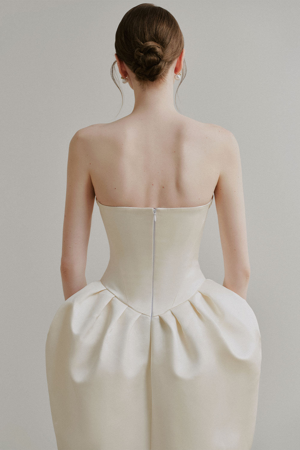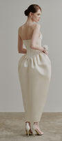 Audrey Tulip Semi-Heart Neck Duchess Satin Midi Dress