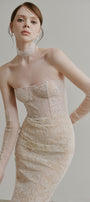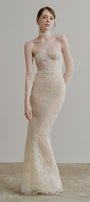 This dress is designed to accentuate your curves and create a stunning silhouette. Crafted with delicate lace and a corset waist, it combines elegance and sexiness for a timeless look. Perfect for formal occasions, weddings, or any special event.