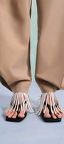 Note: The tassel detail at the ankle in the khaki version belongs to the shoes, not the pants design.