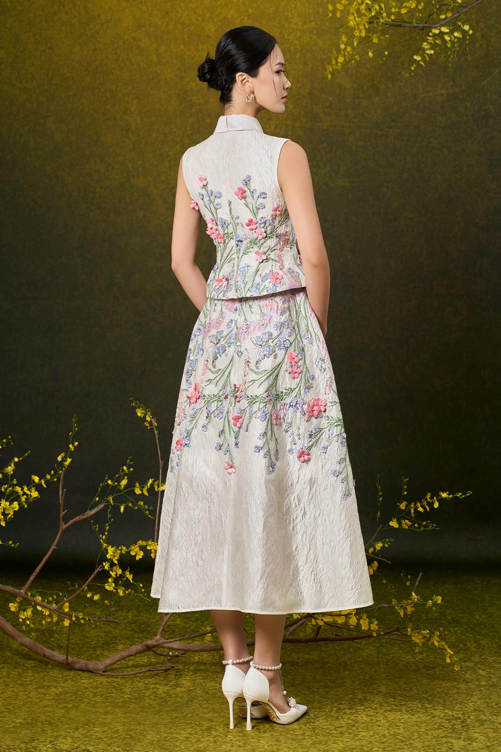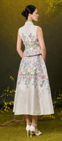 Kairi A-line Flower Applique Damask Midi Skirt