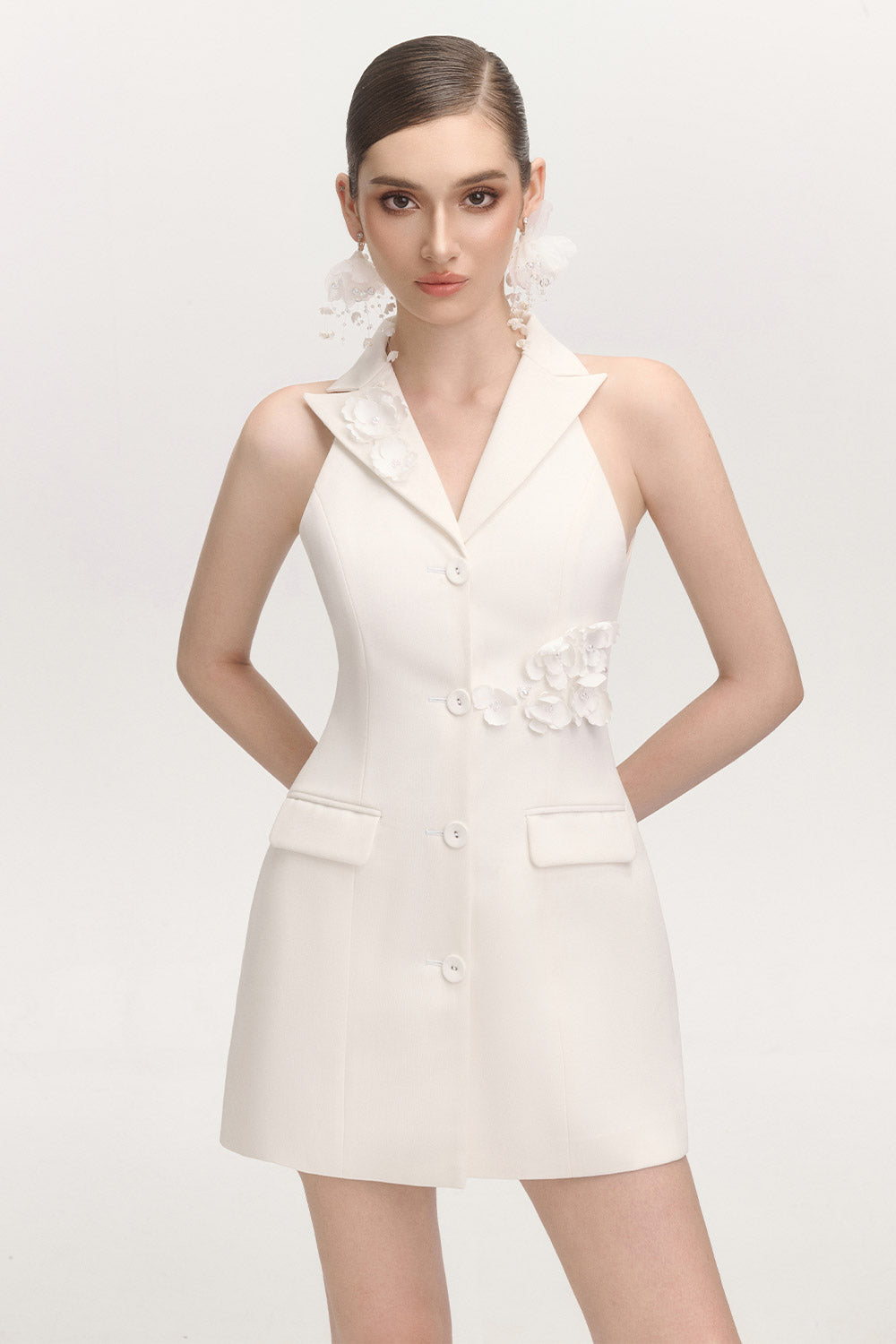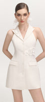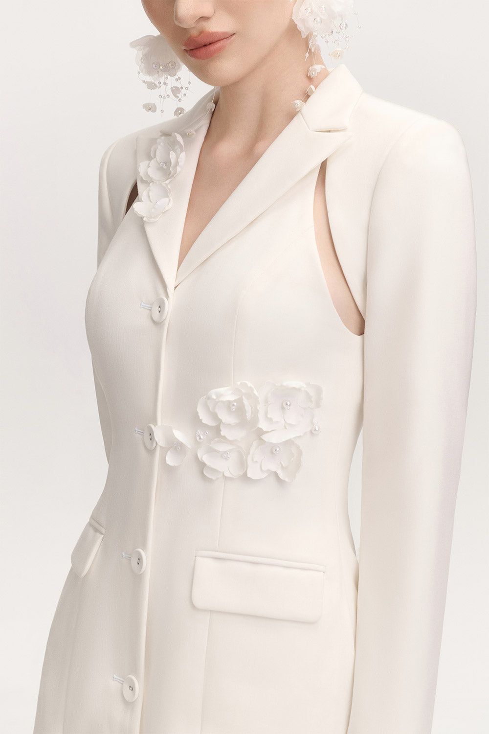 Crop top vest can be taken off, 2 lapels with handmade flowers, 2 side pockets