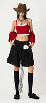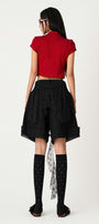 Yumi A-line Ruffled Jean Knee-length Shorts