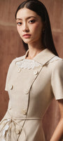 Double button row on the front, Lace trim on the neckline, Padded shoulder