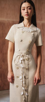 Made with a blend of linen and cotton, this dress is designed for comfort and style. Its A-line cut and short sleeves provide a flattering silhouette, perfect for any occasion. Upgrade your wardrobe with this versatile and classy dress.