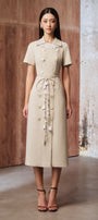 Sillen A-line Short Sleeved Linen Cotton Midi Dress