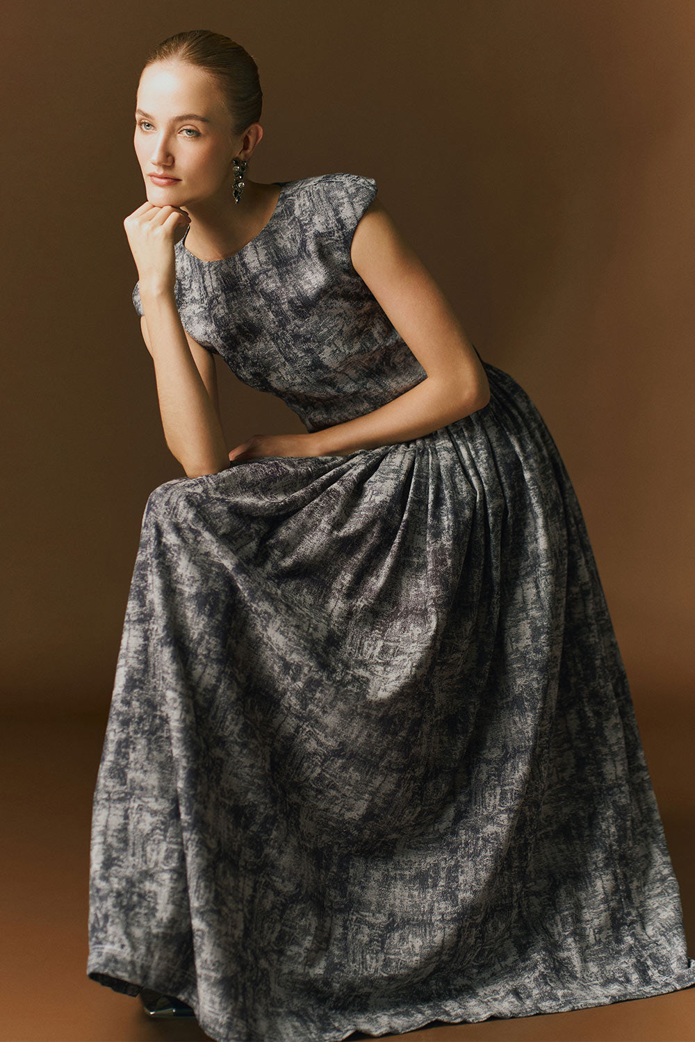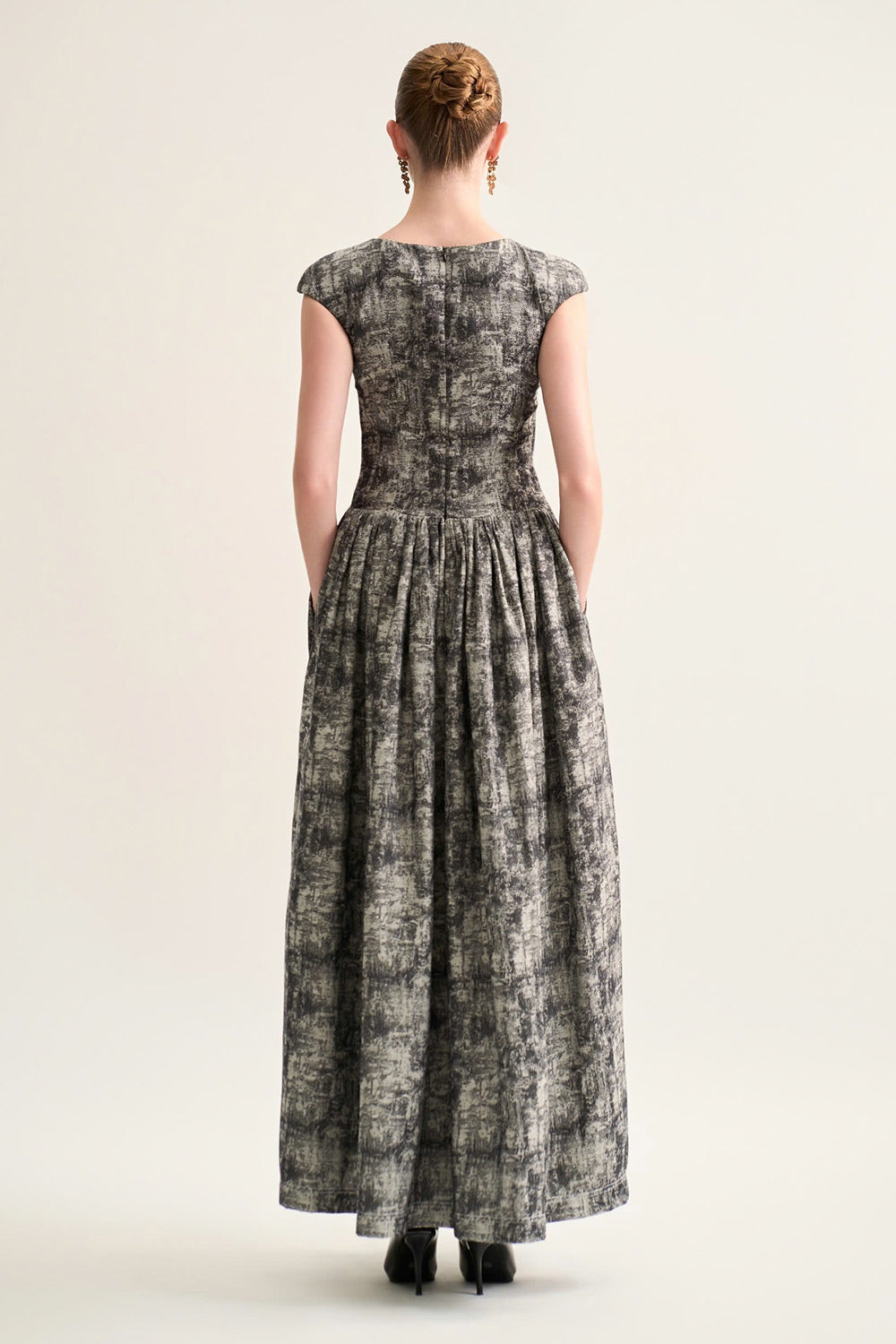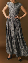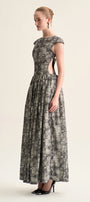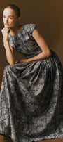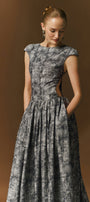 Daria Gathered Cap Sleeved Cotton Jacquard Ankle Length Dress