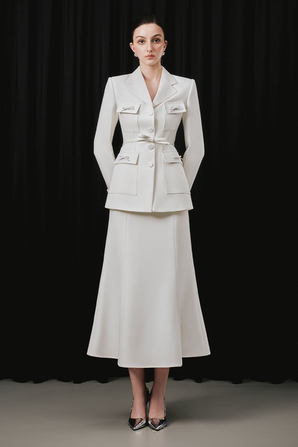 This skirt features a high waist and dart lines, creating a flattering silhouette. The high waist provides support and accentuates the waistline, while the dart lines add a touch of sophistication. Made with cotton, this ankle-length skirt is both comfortable and stylish.