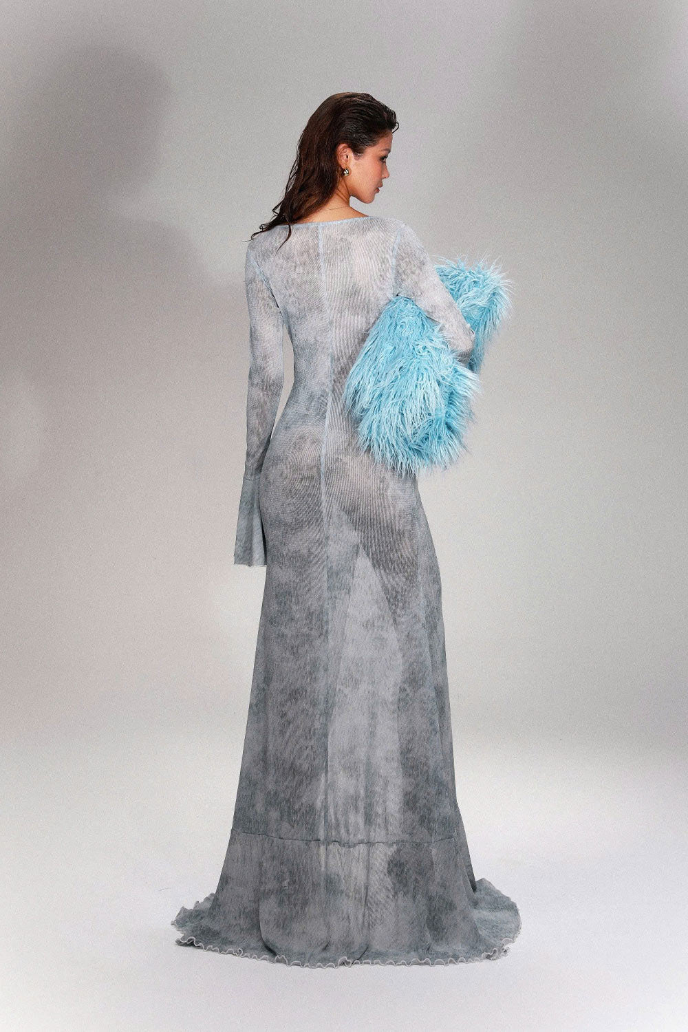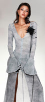 Blakely Trumpet Front Slit Spandex Extra Long Length Dress