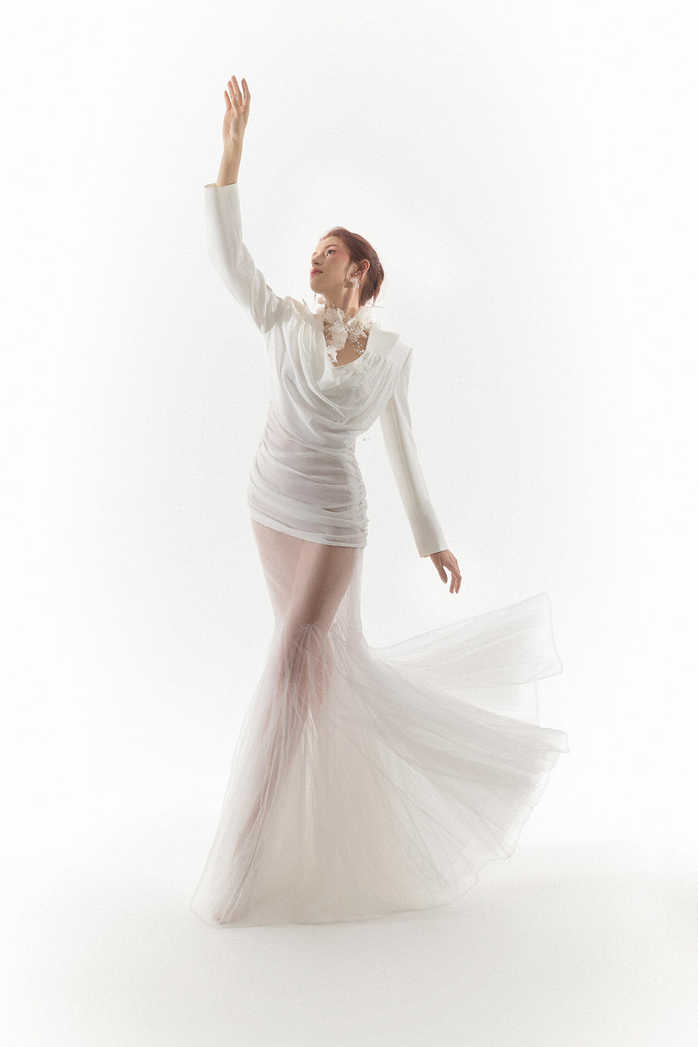 Grace Gored See-Through Tulle Floor Length Skirt