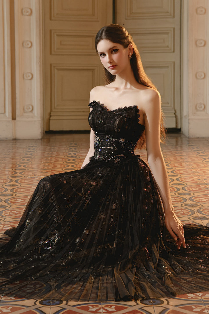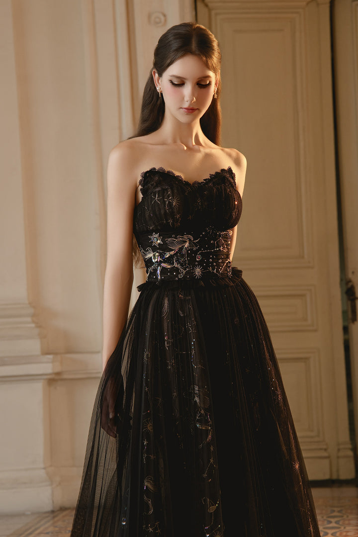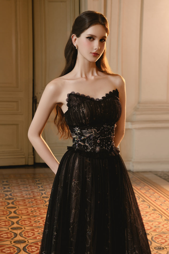 | 特殊功能 | Sweetheart neck with lace trim, Galaxy-inspired sequin embellishment with bead , Gathering chest and waist |