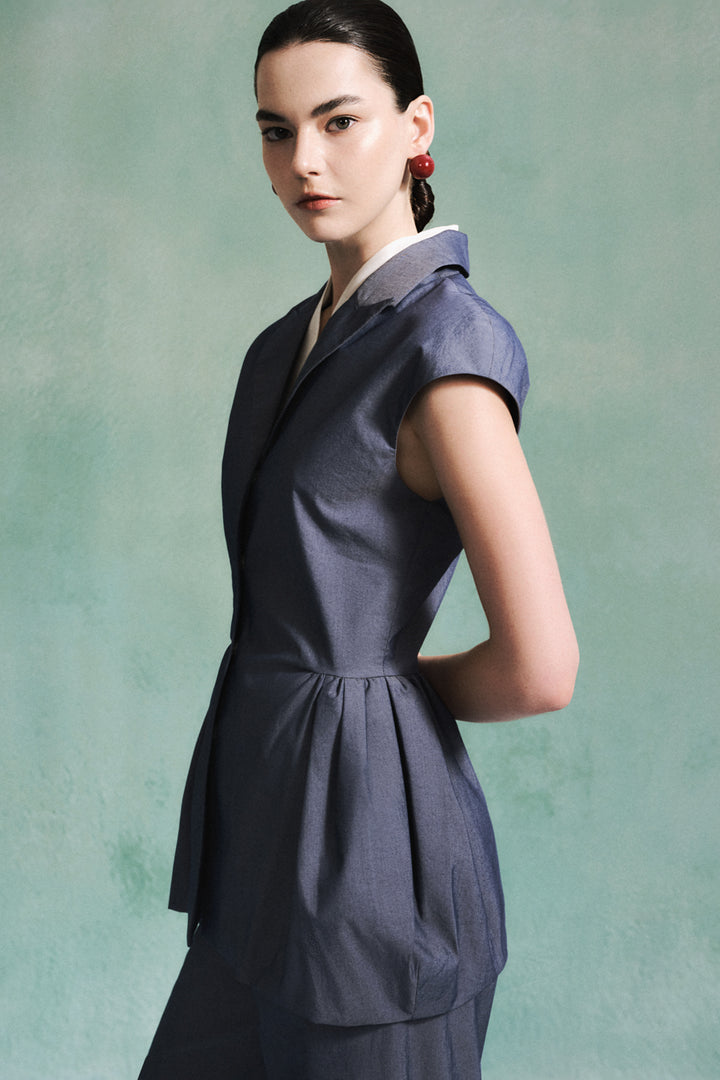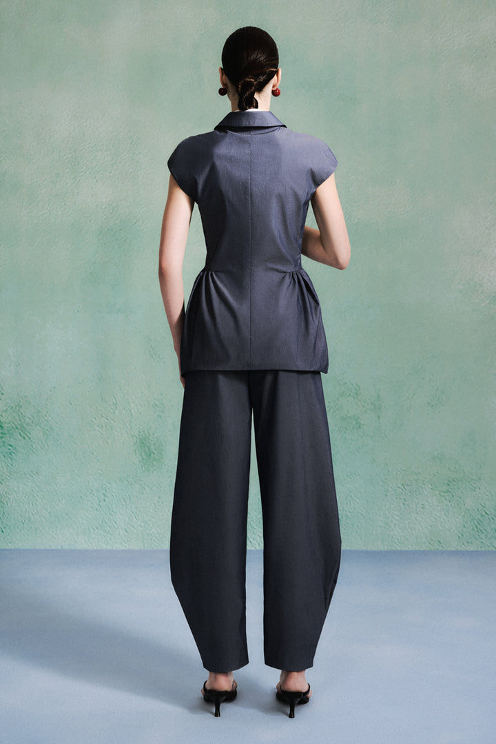 Make a bold statement with the pants. Featuring a striking tulip silhouette and crafted from lustrous taffeta, these pants blend drama and elegance effortlessly. The wide-leg design flows with daring movement, while the ankle length sharpens the edge for a fierce, fashion-forward look.