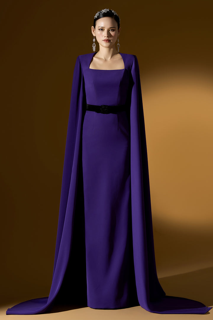 With its sleek sheath silhouette and elegant cape sleeves, the Marceline dress is the perfect choice for any formal occasion. Made from high-quality crepe fabric, this floor length dress exudes sophistication and class. Elevate your style with this timeless piece that combines both comfort and grace.