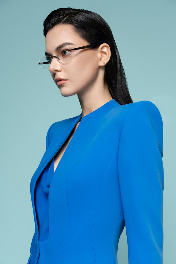This blazer features a modern hourglass silhouette with square shoulder detailing. Crafted from high-quality crepe material, this blazer offers both style and comfort. Elevate any outfit with this versatile and trendy piece.