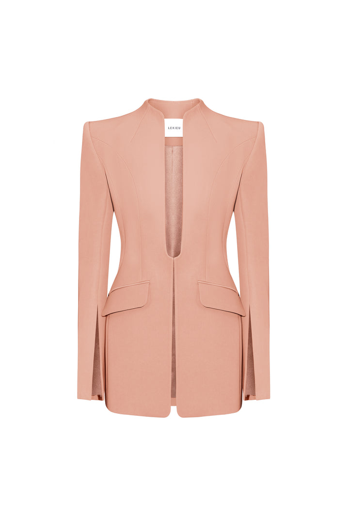 Command a room with the blazer. Its bold, structured shoulders and sleek crepe fabric create a sharp silhouette that demands attention. Perfect for pushing boundaries at work or elevating your evening look, this blazer blends power with refined style effortlessly. Make a fearless statement wherever you go.
