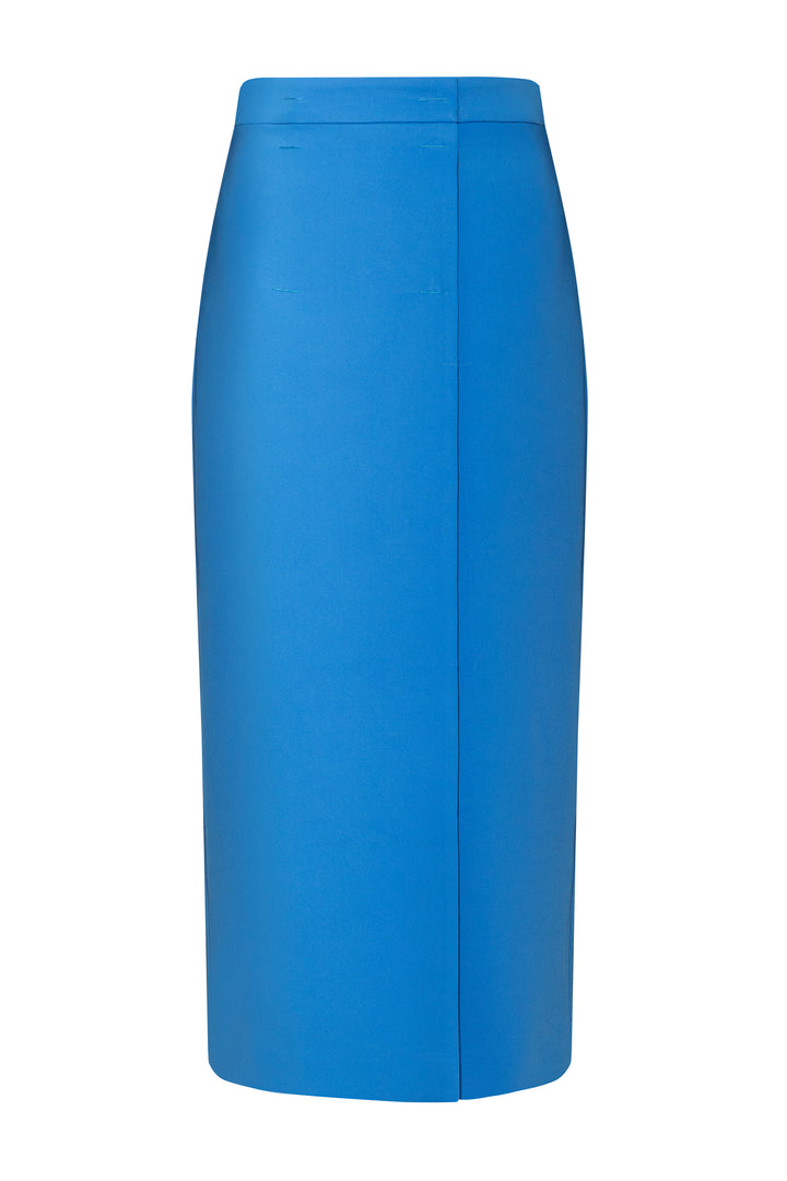 Elevate your style with the skirt. Crafted from luxurious silk crepe, this skirt hugs your silhouette with a daring, high-waisted fit that commands attention. Its sleek midi length balances elegance with bold confidence, perfect for making a statement wherever you go. Embrace sophistication with an edge you’ll love to wear.