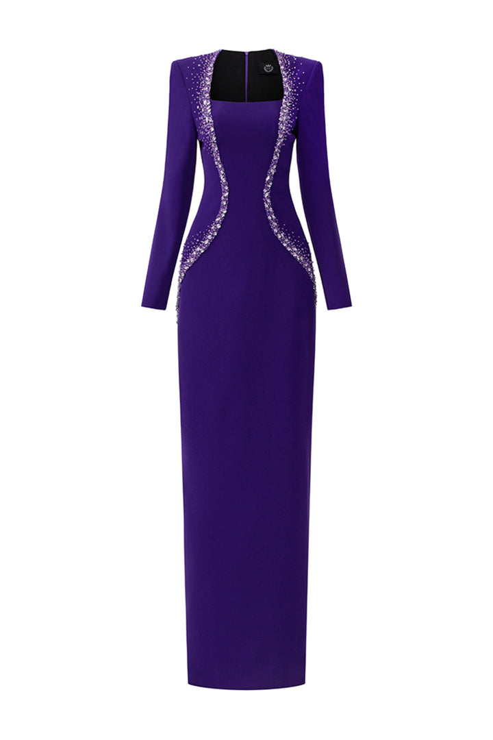 Expertly designed for a flattering silhouette, our dress features a sleek sheath cut and sophisticated trapeze neckline. Made with luxurious crepe fabric, this dress is perfect for any formal event. Elevate your style and confidence with this timeless piece.