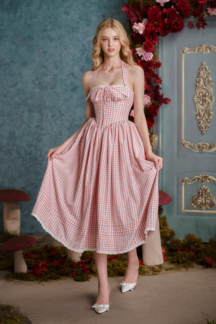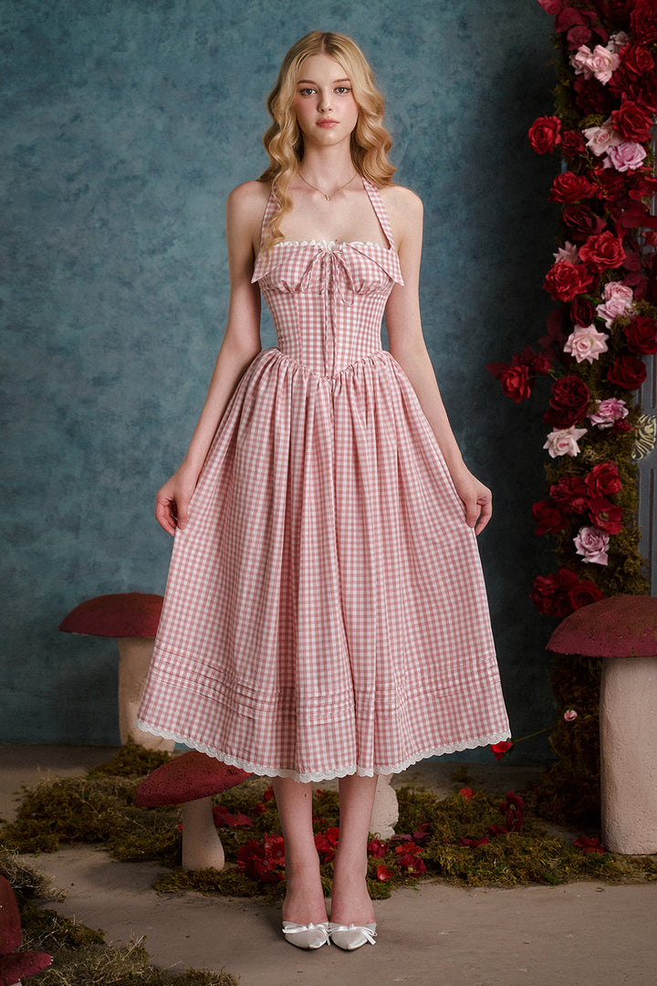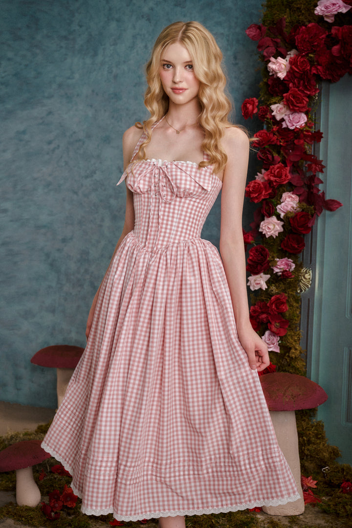 Secret Garden A-line Corset Waist Silk Midi Dress