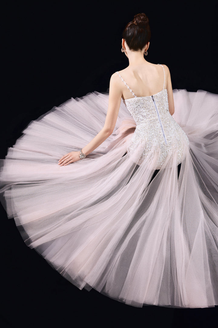 | 特殊功能 | Bead strap, See-through mesh skirt, Sequins embellish upper bodice |