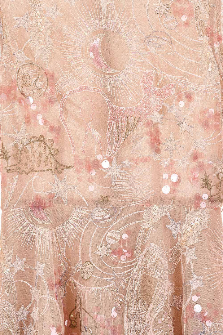 | 特殊功能 | Pleated bottom, Sheer layer, Embroidered floral and celestial, Back zipper |