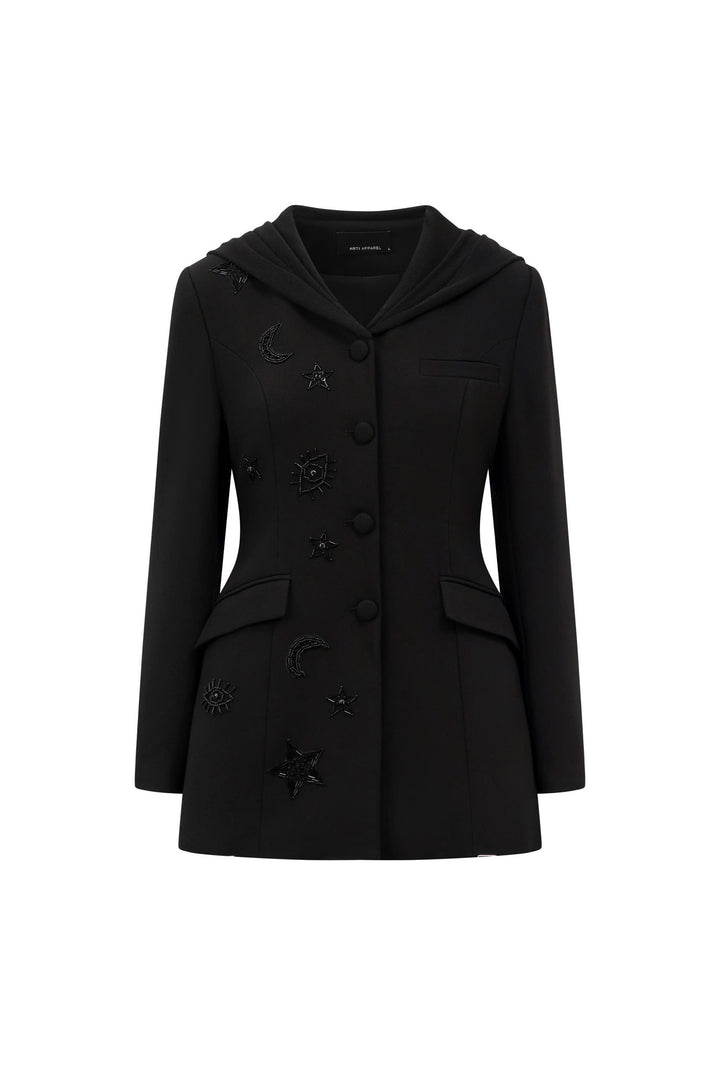 Vera Sheath Hooded Neck Cotton Blend Blazer