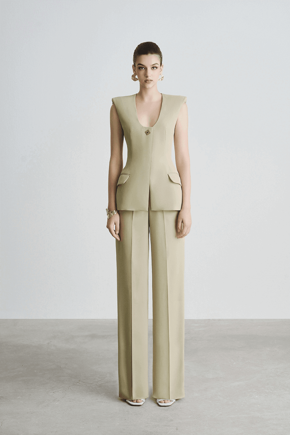 Dive into the trend with our standout pieces: the 'Dorothy Peplum Flap Pocket Polyester Top' and the 'Helen Straight Wide Leg Polyester Floor-Length Pants'. These selections are not just on-trend but are curated to elevate your wardrobe with a touch of sophistication and style. Whether you're assembling an outfit for a day at the office or a night out, our carefully chosen olive green pieces promise to keep you chic and fashionable all season long.