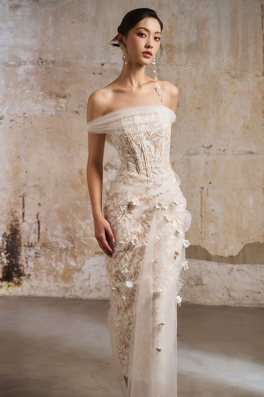 Introducing the dress, a stunning addition to your wardrobe. Its delicate lace design exudes elegance while the off-shoulder style adds a touch of playfulness. Made with quality fabric, it provides comfort and style. Perfect for any occasion, this dress will have you standing out in a crowd.